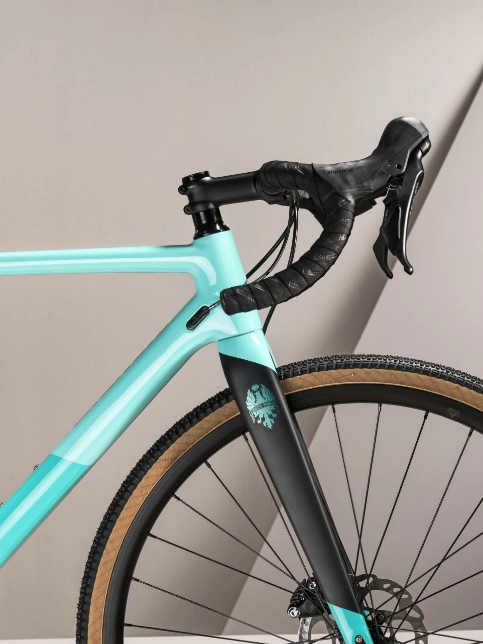 Disque Bianchi entièrement en carbone, 1,5″- 1,1/8″, étrier à montage plat, axe traversant 12x100mm