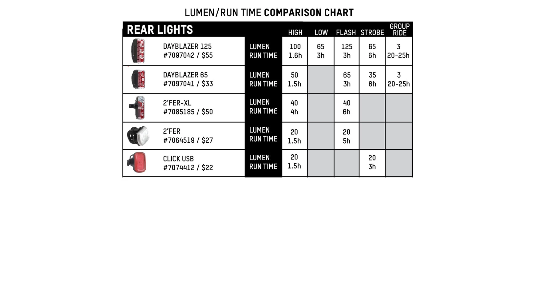 ÉQUIPÉ DE NOS FEUX AVANT ET ARRIÈRE LES PLUS BRILLANTS, C’EST LE COMBO UN-DEUX POUR VOUS AIDER À VOUS GARDER VU DE JOUR OU DE NUIT !Nous avons ce qu’il vous faut avec ces champions. Découvrez le combo un-deux qui vous permet de rester visible jour et nuit ! Doté de nos feux avant et arrière les plus brillants, le jeu de feux avant Dayblazer 1500 et arrière Dayblazer 65 comprend un mode de fonctionnement diurne BLITZ accrocheur et toute la polyvalence de montage dont vous pourriez avoir besoin. Suffisamment lumineux pour vous aider à rester visible pendant la journée, et également idéal pour sortir dans les rues la nuit.