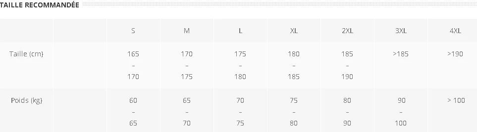 - 8 tailles XS/S/M/L/XL/XXL/3XL/4XL