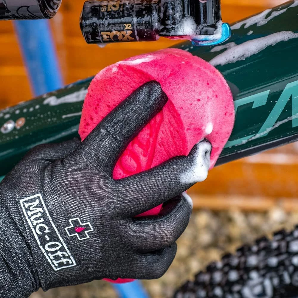 Kit d’entretien et de nettoyage pour votre vélo. Seau, Muc-Off cleaner, Muc-Off Bike Protect, éponge, micro-fibres et différentes brosses inclus.