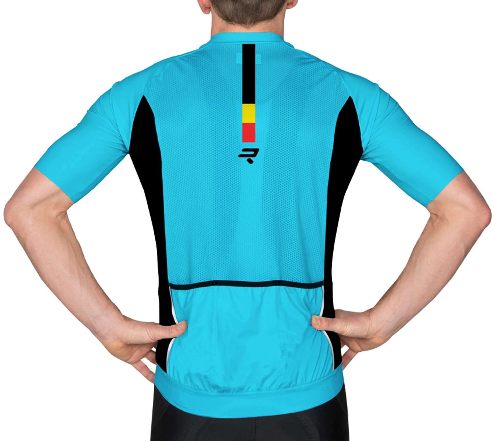 Chemise anatomiquement préformée (en position cycliste) à manches courtes (juste au-dessus du coude) en matériaux légers et super élastiques. Peut être porté dans toutes les conditions météorologiques. Peut être porté directement sur la peau.