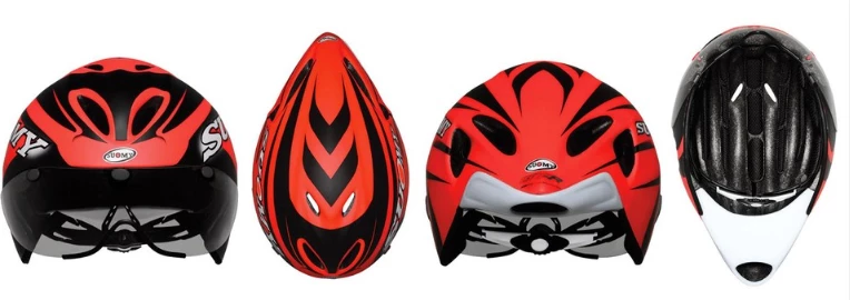 Le casque GT-R est issu de l’expérience de Suomy développée en soufflerie avec des casques de moto. L’objectif était la recherche de ventilation sans pénaliser l’aérodynamisme du produit. Et cet objectif a été atteint par l’équipe de travail Suomy avec ce casque léger, petit, ventilé et mat. Oui, mat, car la glisse au vent sur la peinture mate spéciale utilisée par Suomy est meilleure que celle obtenue habituellement avec la peinture brillante normale. Un soin méticuleux a été apporté au contrôle du flux d’air, afin d’obtenir un produit qui, en plus d’être absolument efficace pour les « chrono-cyclistes », est le produit absolument parfait et idéal pour le triathlon.