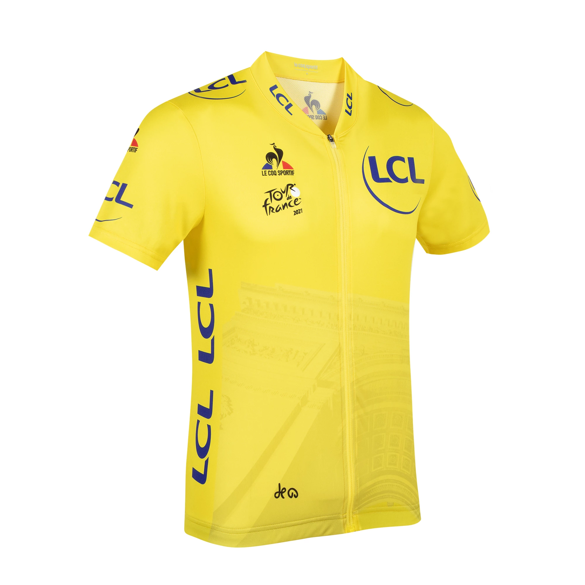 – Maillot Adulte Replica du Tour de France 2021 – Matière Respirante en Polyester, séchage rapide idéal pour la pratique du cyclisme – Photo culte sublimée sur le devant du maillot : le triskèle pour le maillot jaune de départ, l’Arc de Triomphe pour le maillot jaune de course, d’arrivée, le maillot blanc et le maillot vert – Zip sur le devant – Logo « Le Coq Sportif » tricolore sur la poitrine droite au porté – Logo en transfert « Le Tour de France depuis 1903 – Le Coq Sportif » en bas du dos du maillot – Confectionné au Portugal